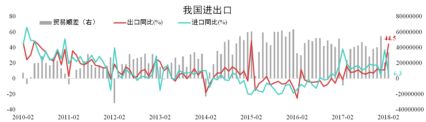 分析認為:2月進口增速大幅下滑,但1-2月總進口增速較去年同期僅下滑6個百分點,內需有轉弱跡象但仍需更多工業(yè)數(shù)據(jù)驗證。對美貿易順差的繼續(xù)擴大可能引發(fā)特朗普動用301條款,將會對海運費以及美元帶來明顯影響。